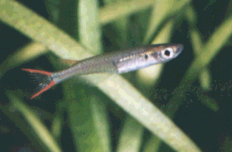 尾鰭の上下両側にオレンジ色のラインが入る。