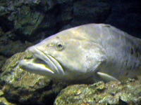 入館すると巨大な「黒潮大水槽」が目に飛び込んできます。そこは日本の海をテーマにした展示の始まり。 イワシのトンネル水槽をくぐり大きなハタとホンソメワケベラの共生水槽,オオカミウオの水槽を見ることができます。