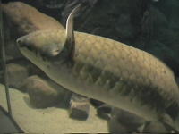 『オーストラリア』 テラリウム水槽には,アロワナやヘビクビガメがゆったりと泳いでいます。隣の水槽には,オーストラリア肺魚がゆったりと横たわっています(でかいです!)。
