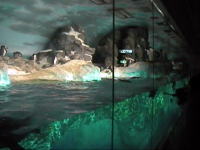 『南極の海』 いよいよ目玉の展示。ペンギン展示室です。人口降雪機の下に陣取って立っているペンギンがひょうきんに見えれば,手前の水槽を俊敏に泳ぐペンギンが勇ましく見えます。