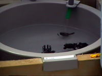 『オーシャンシアター』 縦17m横23mの巨大スクリーンに雄大な自然が映し出されます。私が入館したときは,南極大陸をテーマにした映像でした。上映時間は40分程度で,これだけでも映画館の入館料と考えれば水族館と2つ楽しめて割安感があります。博物館のプラネタリウム,名古屋港水族館のオーシャンシアターでしょか? 別棟として,ウミガメの繁殖・研究施設がありました。